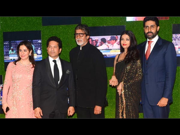 സച്ചിന് തെണ്ടുല്ക്കറിന്റെ ജീവിതകഥ സിനിമയാക്കി സച്ചിന് എ ബില്യണ് ഡ്രീംസ് എന്ന പേരില് പുറത്തിറക്കിയിരുന്നു. തിയറ്ററുകളില് വിജയമായി സിനിമ മുന്നേറുകയാണ്. അതിനിടെ സംഘടിപ്പിച്ച പരിപാടിയിലാണ് ബച്ചന് കുടുംബം പങ്കെടുത്തത്.
