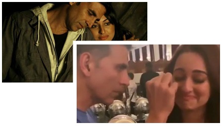 അഭിമുഖത്തിനിടെ നടി സോനാക്ഷി സിൻഹ അക്ഷയ് കുമാറിനെ കസോരയിൽ നിന്ന് തള്ളിയിടുന്നതിന്റെ വീഡിയോ സമൂഹമാധ്യമങ്ങളിൽ വൈറലായിരുന്നു. ചിത്രത്തെ കുറിച്ച് നടൻ സംസാരിച്ചു കൊണ്ടിരിക്കവെയാണ് നടിയുടെ ഭാഗത്ത് നിന്ന് ഇത്തരത്തിലുളള നീക്കമുണ്ടായത്. അക്ഷയ് കുമാറിന്റെ അപ്രതീക്ഷിത വീഴ്ച കൂടെയുള്ളവരെ ഞെട്ടിച്ചിരുന്നു. ഇപ്പോഴിത സോനാക്ഷി സിൻഹയുടേയും അക്ഷയ് കുമാറിന്റേയും മറ്റൊരു രസകരമായ വീഡിയോ വൈറലാവുകയാണ്.