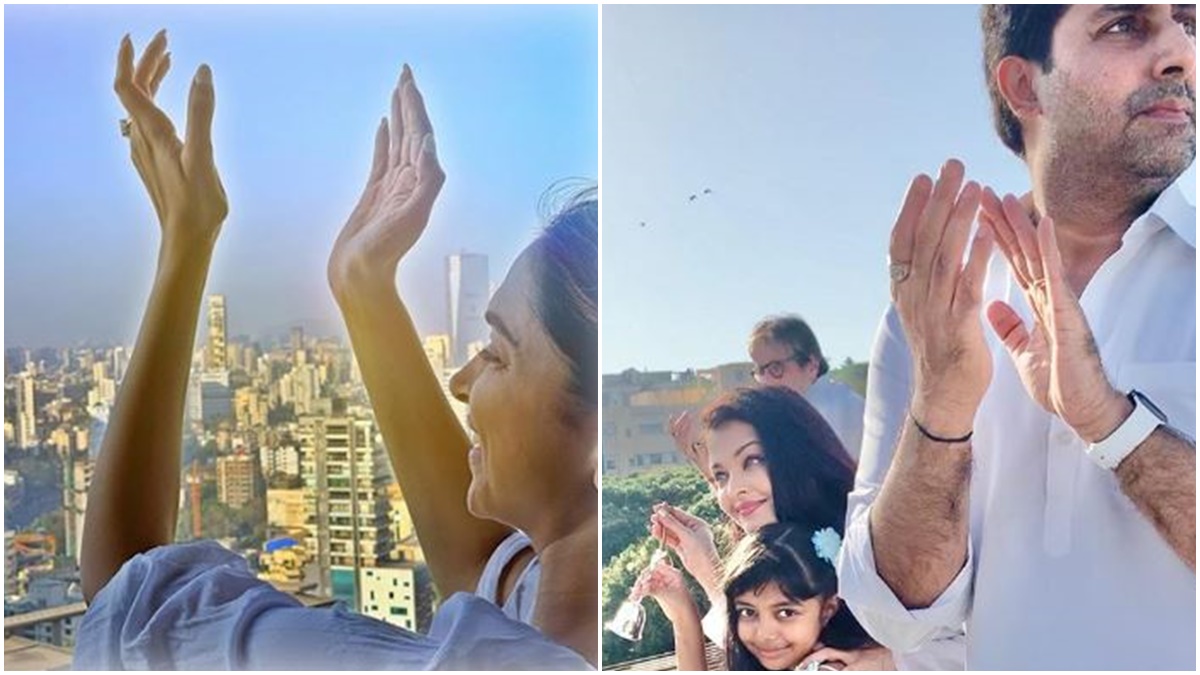 ബോളിവുഡ് താരങ്ങളെല്ലാം ഇതിന്റെ ചിത്രങ്ങളും വീഡിയോകളും സോഷ്യല് മീഡിയില് പങ്കുവെച്ചിരുന്നു. അമിതാഭ് ബച്ചന്, അഭിഷേക് ബച്ചന്, മകള് ആരാധ്യ തുടങ്ങിയവര്ക്കൊപ്പമുളള ഒരു ചിത്രം പങ്കുവെച്ചുകൊണ്ടാണ് നടി ഐശ്വര്യ എത്തിയിരുന്നത്. ഇവര് ടെറസില് നിന്നും കൈയ്യടിച്ചും മണി കിലുക്കിയും ആരോഗ്യ പ്രവര്ത്തകരെ അഭിനന്ദിച്ചു. ദൈവം രക്ഷിക്കട്ടെ എന്നാണ് ഐശ്വര്യ റായ് ബച്ചന് ചിത്രം പങ്കുവെച്ചതിനൊപ്പം കുറിച്ചത്.