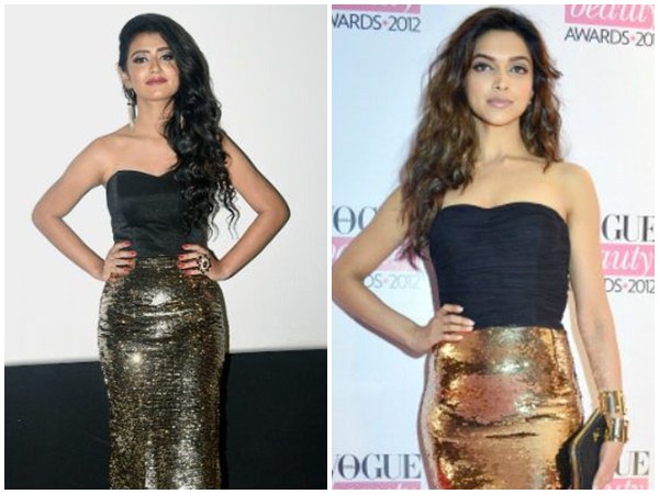 ബോളിവുഡ് മാധ്യമങ്ങളിലെ ഇപ്പോഴത്തെ ചർച്ച വിഷയം ടീസർ ലോഞ്ചിന് പ്രിയ ധരിച്ചിരുന്ന വസ്ത്രമാണ്. കറുപ്പും സ്വർണ്ണ കള്ളറുമുളള ഗൗണായിരുന്നു താരം ധരിച്ചത്. 2012 ൽ വോഗ് മാസികയുടെ ബ്യൂട്ടി പുരസ്കാരം ഏറ്റവും വാങ്ങാൻ വന്നപ്പോൾ ഇതേ തരത്തിലുളള വസ്ത്രമായിരുന്നു ദീപി ധരിച്ചിരുന്നത്. ഈ രണ്ടു ചിത്രങ്ങളും ഇപ്പോൾ സോഷ്യൽ മീഡിയയിൽ വൈറലാണ്.70 കോടി രൂപ മുതല് മുടക്കിലാണ് പ്രിയയുടെ ശ്രീദേവി ബംഗ്ലാവ് ഒരുങ്ങുന്നത്. ഒരു ഹൊറര് ത്രില്ലര് ഗണത്തിൽപ്പെട്ട ചിത്രമായിരിക്കും ഇതെന്നാണ് പുറത്തു വരുന്ന റിപ്പോർട്ട്