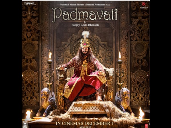 ദീപിക പദുക്കോണും രണ്വീര് സിംഗും, ഷാഹിദ് കപൂറും ഒന്നിക്കുന്ന സിനിമയില് നിന്നും പുതിയ പോസ്റ്റര് പുറത്തിറക്കിയിരിക്കുകയാണ്. സിംഹാസനത്തിന് പുറത്തിരിക്കുന്ന രണ്വീര് സിംഗിന്റെ ചിത്രമാണ് പോസ്റ്ററില് ഉള്പ്പെടുത്തിയിരിക്കുന്നത്. ചിത്രത്തില് നിന്നും പുറത്തിറക്കിയ ട്രെയിലര് വൈറലായിരുന്നു.