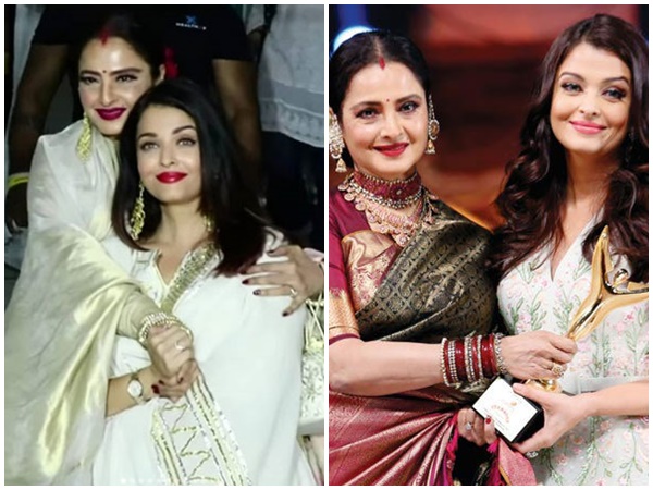 രണ്ട് കാലഘട്ടത്തിലായി ബോളിവുഡിലെ സൗന്ദര്യ റാണിമാരാണ് ഐശ്വര്യ റായിയും രേഖയും. അമിതാഭ് ബച്ചനും രേഖയും തമ്മില് പ്രണയത്തിലാണെന്ന് ഗോസിപ്പുകള് വന്നതോടെ പൊതുവേദിയില് ബച്ചനോ ഭാര്യ ജയ ബച്ചനോ രേഖയോട് സംസാരിക്കാറില്ല. എന്നാല് ഇതൊന്നും മരുമകള് ഐശ്വര്യ റായിയ്ക്ക് ഇല്ല.
