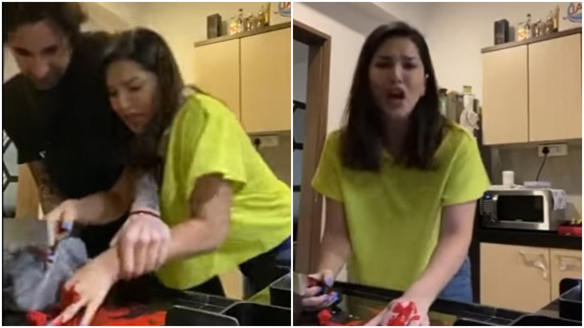 കൈ മുറിഞ്ഞ് അലറി വിളിച്ച് കരയുന്ന സണ്ണി ലിയോൺ, സഹായിക്കാന് ഭര്ത്താവും, പിറകെ ട്വിസ്റ്റും; വീഡിയോ