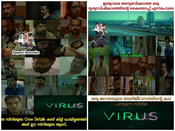 വൈറസിലെ സൗബിന്റേതായി കാണിച്ച ആ ഒരു രംഗം മാത്രം മതി പുറത്തിറങ്ങാന് പോലും പേടിച്ച ആ ദിവസങ്ങള് മലയാളികള്ക്ക് എന്തായിരുന്നു എന്ന് കാണിച്ച് തരാന് എന്നാണ് ട്രോളന്മാര് പറയുന്നത്.