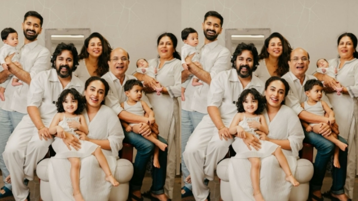 മാതാപിതാക്കൾക്കും സഹോദരി റേച്ചലിനും റേച്ചലിന്റെ ഭർത്താവ് റൂബനും അവരുടെ ആൺമക്കൾക്കും ഒപ്പം ഇരിക്കുന്ന പേളിയും ശ്രീനിഷും നിലയും നിതാരയുമാണ് പുതിയ കുടുംബഫോട്ടോയിലുള്ളത്. നിതാരയുടെ ന്യൂബോൺ ബേബി ഫോട്ടോഷൂട്ട് നടത്തിയപ്പോഴാണ് ഈ കുടുംബചിത്രം പേളി പറഞ്ഞെടുപ്പിച്ചത്.