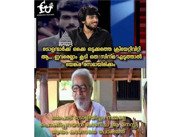 ട്രോളന്മാര്ക്ക് ഒക്കെ ഒടുക്കത്തെ ക്രീയേറ്റിവിറ്റിയാണ്. ഇവരെല്ലാം കൂടി ഒരു സിനിമ എടുത്താല് ഭയങ്കര രസമായിരിക്കുമെന്ന് കാളിദാസ് പറഞ്ഞിരുന്നു. ഇതോടെ ഒരുപാട് ട്രോളിയിട്ടും നമ്മളെ പൊക്കി പറയാന് കാണിച്ച ആ മനസ് ആരും കാണാതെ പോകരുതെന്നായിരുന്നു ട്രോളന്മാര് പറഞ്ഞത്.