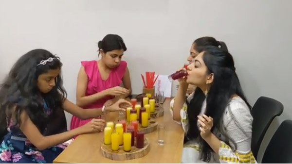 'മത്സരത്തിനുള്ള താല്പര്യം എത്രത്തോളമുണ്ടെന്ന് നിങ്ങള്ക്കിവിടെ വ്യക്തമായി കാണാം. വീഡിയോയില് നന്നായി വരുന്നതിന് വേണ്ടി ഞാന് ശ്രദ്ധിച്ച് മെല്ലെയായിരുന്നു കുടിച്ചത്. അത് മാത്രമല്ല വെളുത്ത നിറമുള്ള എന്റെ വസ്ത്രത്തില് ഒന്നും വീഴാതിരിക്കാനും ഞാന് ശ്രദ്ധിച്ചു. ഏറ്റവും കൂടുതല് കുടിക്കുന്നത് ആരാണെന്ന് അറിയാന് ആണ് ദിയ ശ്രമിച്ചത്.