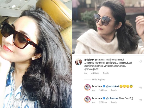 വിവാഹത്തെക്കുറിച്ചുള്ള ചര്ച്ചകള് പൊടിപൊടിക്കുന്നതിനിടയിലാണ് മറുപടിയുമായി ഭാമയും എത്തിയത്. താരത്തിന്റെ മറുപടി കണ്ടവരില് ഒരാള്ക്ക് പോലും എന്താണ് ഇതെന്ന് പിടികിട്ടിയിട്ടില്ല. 2ബിഎസിഒഎംഡി2 ഇതായിരുന്നു താരത്തിന്റെ മറുപടി. ഇംഗ്ലീഷിലുള്ള മറുപടിയോടൊപ്പം വിങ്കിംഗ് സ്മൈലിയുമുണ്ടായിരുന്നു. എന്താണ് ഇതെന്നറിയാതെ അമ്പരന്നിരിക്കുകയാണ് ആരാധകര്. അതേക്കുറിച്ച് ചോദിച്ചപ്പോള് താരം പ്രതികരിച്ചിരുന്നില്ല. നേരത്തെയും ഭാമയോട് വിവാഹത്തെക്കുറിച്ച് ചോദിച്ച് ആരാധകരെത്തിയിരുന്നു.