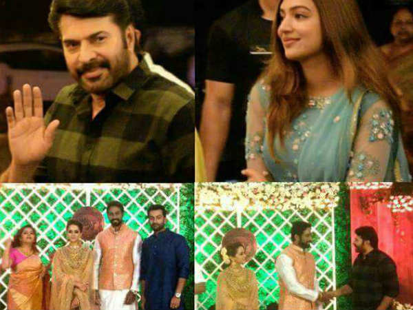 മമ്മൂട്ടി, ലാല്, ജയസൂര്യ, സംയുക്ത വര്മ്മ, ബിജു മേനോന്, കെപിഎസി ലളിത, ജയറാം, പാര്വ്വതി, കാളിദാസന്, പൃഥ്വിരാജ് ,റിമ കല്ലിങ്കല്, പൂര്ണ്ണിമ ഇന്ദ്രജിത്ത് തുടങ്ങി നിരവധി പേരാണ് വിവാഹ വിരുന്നില് പങ്കെടുത്തിയത്. വിരുന്നിനിടയിലെ ചിത്രങ്ങള് സോഷ്യല് മീഡിയയിലൂടെ വൈറലായിക്കൊണ്ടിരിക്കുകയാണ്. ഫേസ്ബുക്കിലൂടെ വൈറലായിക്കൊണ്ടിരിക്കുന്ന ചിത്രങ്ങളിലൂടെ തുടര്ന്ന് വായിക്കാം.