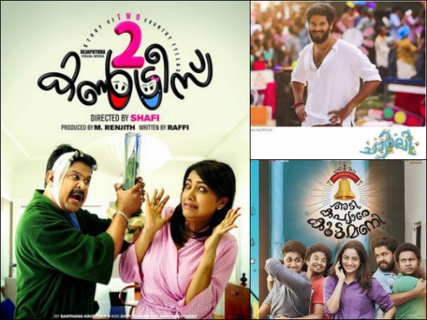 കഴിഞ്ഞ വര്ഷം ക്രിസ്തുമസിന് തിയേറ്ററുകളില് മികച്ച വിജയം നേടിയ ചിത്രമങ്ങളാണ് ചാര്ലി, ടു കണ്ട്രീസ്, അടി കപ്യാരെ കൂട്ടമണി. ദിലീപിന്റെ ടു കണ്ട്രീസ്, ദുല്ഖറിന്റെ ചാര്ലി തുടങ്ങിയവ ബോക്സോഫീസില് വന് വിജയം നേടി. ധ്യാന് ശ്രീനിവാസന് കേന്ദ്ര കഥാപാത്രത്തെ അവതരിപ്പിക്കുന്ന അടി കപ്യാരെ കൂട്ടമണി ഹിറ്റ് ചാര്ട്ടില് ഇടം നേടിയിരുന്നു.