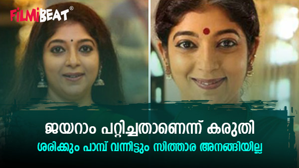 ഏകദേശം അരയ്ക്കൊപ്പം വെള്ളത്തിലെത്തിയപ്പോഴാണ് അടുത്തൂടെ ഒരു നീര്ക്കോലി പോകുന്നത് കണ്ടത്. പാമ്പിനെ ഭയങ്കര പേടിയുള്ള സിത്താര വെള്ളത്തില് നിന്നും അലമുറയിട്ട് കരഞ്ഞ് ഓടി കയറി. പിന്നെ എല്ലാവരും കൂടി നിര്ബന്ധിച്ചിട്ടാണ് വീണ്ടും ആ ഷോട്ട് എടുക്കാന് സിത്താരയെ വെള്ളത്തിലേക്ക് കൊണ്ട് പോകുന്നത്. പക്ഷേ വെള്ളത്തില് തല മുക്കാന് അവര് സമ്മതിക്കുന്നില്ല. നടിയുടെ മനസില് ആ പാമ്പ് പോകുന്നതാണുള്ളത്.