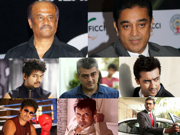 മുപ്പത്തിയഞ്ച് കോടിയാണ് 2015 ല് രജനീകാന്തിന്റെ പ്രതിഫലം. ഉലകനായകന്റെയോ മുപ്പത് കോടി. അത് പിന്നെ സൂപ്പര് സ്റ്റാറുകളാണെന്ന് വിചാരിയ്ക്കാം. ജീവ, ശിവകാര്ത്തികേയന്, വിജയ് സേതുപതി തുടങ്ങിയ കാലുറച്ചു വരുന്ന താരങ്ങള് വരെ കോടികളാണത്രെ പ്രതിഫലം വാങ്ങുന്നത്. അതൊന്നു നോക്കാം...