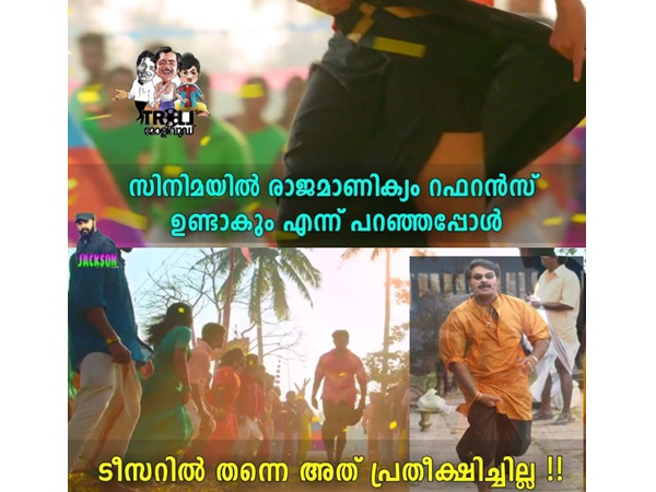 സിനിമയില് രാജമാണിക്യം റഫറന്സ് ഉണ്ടാകും എന്ന് പറഞ്ഞപ്പോള് ആരാധകരും ആകാംഷയിലായിരുന്നു. എന്നാല് ടീസറില് തന്നെ ആ രംഗം കാണിച്ച് കൈയടി വാങ്ങിയിരിക്കുകയാണ്.