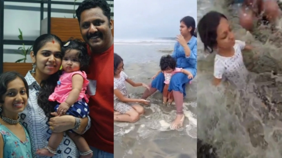 വീഡിയോ എടുക്കുന്നതും കുട്ടികളുടെ കുറുമ്പിലേക്കും ശ്രദ്ധപോയതിനാൽ ശക്തമായ തിരമാല വന്നത് അഞ്ജലിയോ ഭർത്തവോ കണ്ടില്ല. തിര പാഞ്ഞെത്തിയപ്പോൾ അഞ്ജലിയുടെ രണ്ട് മക്കളും കടലിൽ വെള്ളത്തിൽ മുങ്ങി. ഉടൻ തന്നെ രണ്ടുപേരെയും അഞ്ജലിയും ഭർത്താവും എടുത്തതിനാൽ കൂടുതൽ അപകടങ്ങൾ ഉണ്ടായില്ല.