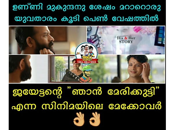 ചാണക്യതന്ത്രം എന്ന സിനിമയ്ക്ക് വേണ്ടി ഉണ്ണിമുകുന്ദന് സ്ത്രീ വേഷത്തിലെത്തിയിരുന്നു. പിനനാലെ ജയസൂര്യയും ഞാന് മേരിക്കുട്ടിയ്ക്ക് വേണ്ടി പെണ്വേഷത്തില് മോക്കോവര് നടത്തി ഞെട്ടിച്ചിരിക്കുകയാണ് എന്ന് തന്നെ പറയാം.