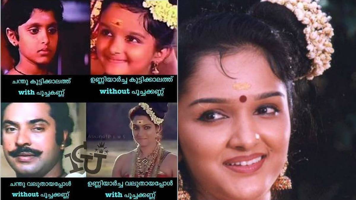 കുട്ടിക്കാലത്തെ ചന്തുവിന് പൂച്ചക്കണ്ണുണ്ട്. വിനീത് കുമാറാണ് കുട്ടിക്കാല വേഷം അവതരിപ്പിച്ചത്. അദ്ദേഹത്തിന്റെ പ്രധാന പ്രത്യേകതകളിലൊന്ന് കൂടിയാണ് ആ കണ്ണ്. ചന്തു വലുതായപ്പോള് പൂച്ചക്കണ്ണ് കാണുന്നില്ല. മമ്മൂട്ടിയാണ് ചന്തു ചേകവരെ അനശ്വരമാക്കിയത്. കുട്ടിക്കാലത്ത് ഉണ്ണിയാര്ച്ചയ്ക്ക് പൂച്ചക്കണ്ണില്ല, ജോമോളാണ് ബാല്യകാല വേഷം അവതരിപ്പിച്ചത്. ഉണ്ണിയാര്ച്ച വലുതായപ്പോള് എങ്ങനെയാണ് പൂച്ചക്കണ്ണ് വന്നതെന്നുമാണ് ട്രോളര്മാരുടെ ചോദ്യം.