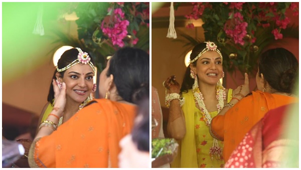 മഞ്ഞയിൽ ഗംഭീര ലുക്കിൽ കാജൽ അഗർവാൾ, നടിയുടെ ഹല്ദി ആഘോഷ ചിത്രങ്ങൾ വൈറൽ