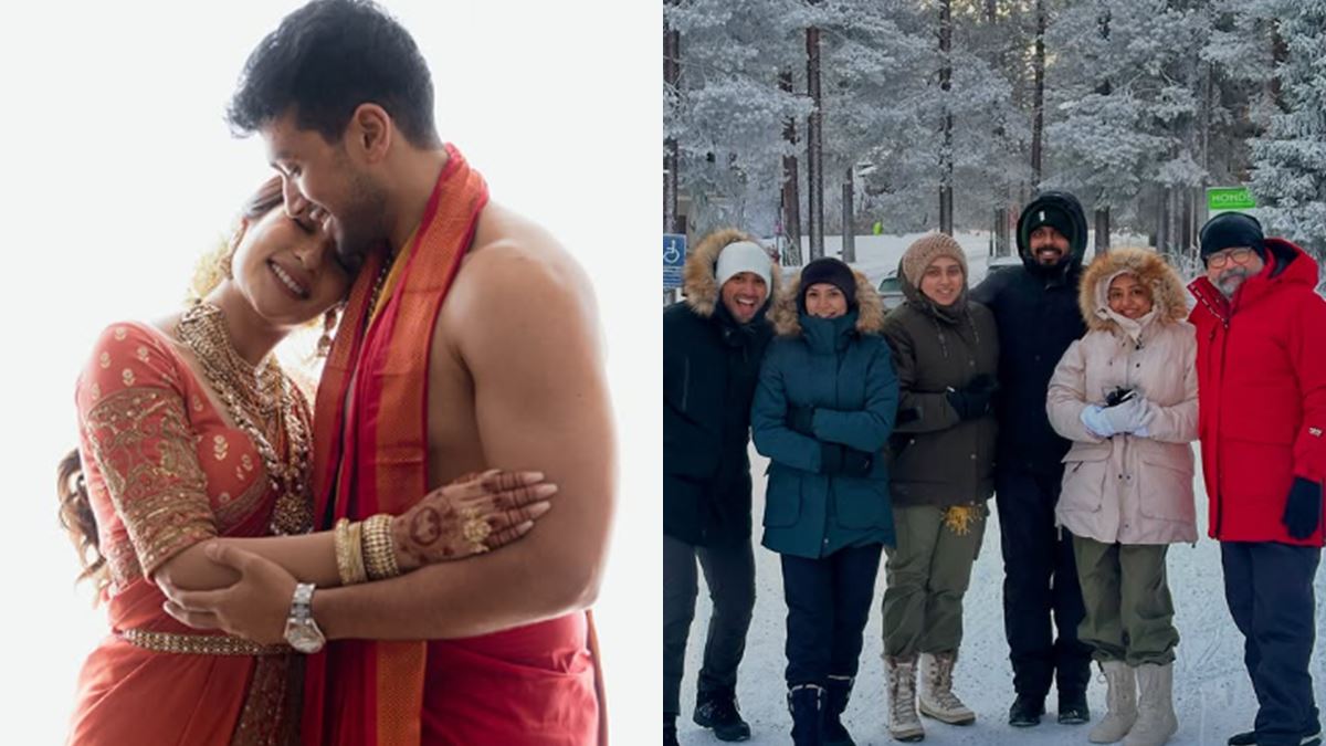 ഫിൻലന്റിൽ നിന്നുള്ള ഫോട്ടയാണ് കാളിദാസ് പങ്കുവെച്ചത്. ഒപ്പം ഭാര്യ തരിണിയും അച്ഛനും അമ്മയും മാളവികയും നവനീതുമുണ്ട്. വിവാഹം കഴിഞ്ഞ് ബുധനാഴ്ച നടന്ന റിസപ്ഷന് ശേഷം താര കുടുംബം ഫിൻലൻഡിലേക്ക് പറന്നിട്ടുണ്ട്. ഫിൻലന്റിലെ ലാപ്ലന്റിൽ നിന്നുള്ള ദൃശ്യങ്ങൾ തരിണിയും ഇൻസ്റ്റഗ്രാം സ്റ്റോറിയിൽ പങ്കുവെച്ചിട്ടുണ്ട്.