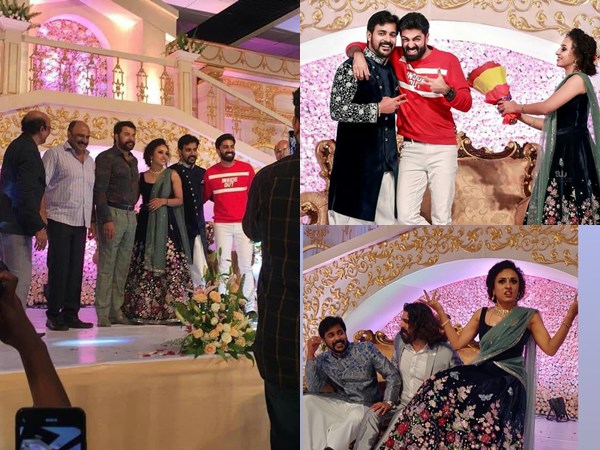 നവദമ്പതികളെ അനുഗ്രഹിക്കുന്നതിനായി മമ്മൂട്ടിയും എത്തിയിരുന്നു. സിയാല് കണ്വെന്ഷന് സെന്ററിലെ വിരുന്നിലാണ് അദ്ദേഹം പങ്കെടുത്തത്. അദ്ദേഹത്തെ കണ്ടപ്പോള് പേൡആര്ത്തുവിളിച്ചിരുന്നു. സിദ്ദിഖും അദ്ദേഹത്തിനൊപ്പമുണ്ടായിരുന്നു. പുതിയ സിനിമയായ ബിലാല് ലുക്കുമായാണ് അദ്ദേഹമെത്തിയത്. അദ്ദേഹത്തിന്റെ വരവിനിടയിലെ ചിത്രങ്ങളും വീഡിയോയും വൈറലായി മാറിയിരുന്നു.