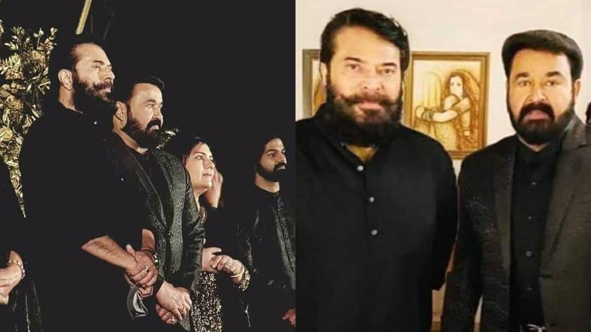 ദിലീപും ചടങ്ങില് പങ്കെടുത്തിരുന്നു. ഇപ്പോഴിതാ മമ്മൂട്ടി എത്തിയതിന്റെ ചിത്രങ്ങളും വീഡിയോയും വൈറലായിക്കൊണ്ടിരിക്കുകയാണ്. നീട്ടി വളര്ത്തിയ മുടി കെട്ടിവെച്ച് മീശ പിരിച്ചാണ് മമ്മൂട്ടി എത്തിയത്. കറുത്ത നിറത്തിലുള്ള കുര്ത്തിയായിരുന്നു അദ്ദേഹം അണിഞ്ഞത്. പ്രണവ് മോഹന്ലാലും കറുപ്പ് കുര്ത്തിയിലായിരുന്നു. മോഹന്ലാലും കറുത്ത സ്യൂട്ടായിരുന്നു അണിഞ്ഞത്. സുചിത്രയും അതേ നിറത്തിലുള്ള വസ്ത്രമായിരുന്നു ധരിച്ചത്.