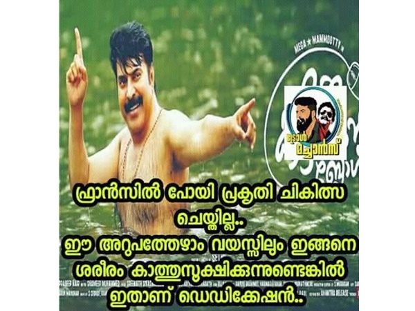 ഗ്ലാമറ് കൂട്ടാന് ഫ്രാന്സില് പോയി പ്രകൃതി ചികിത്സ ചെയ്യുകയൊന്നും വേണ്ട. ഈ അറുപത്തിയേഴാം വയസിലും ശരീരം കാത്ത് സൂക്ഷിക്കാന് മമ്മൂട്ടി കാണിക്കുന്നത് പോലെയുള്ള ഡെഡിക്കേഷന് മാത്രം മതി.