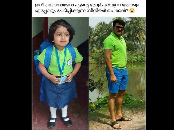 മമ്മൂട്ടിയാണോ ഈ കൊച്ചിനെ പേടിപ്പിക്കുന്ന സീനിയര് ചെക്കന്! നഴ്സറി പയ്യനായി മമ്മൂട്ടി!