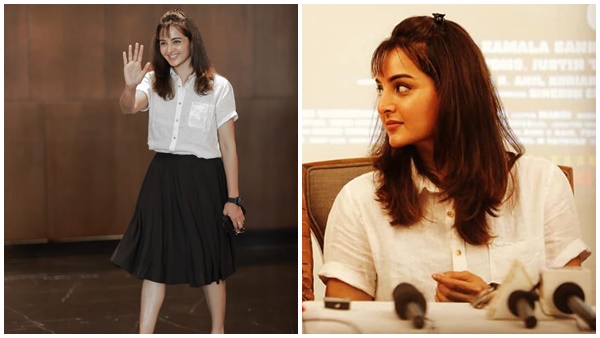 ഇപ്പോൾ സോഷ്യൽ മീഡിയയിലെ ചർച്ചാ വിഷയം മഞ്ജു വാര്യരുടെ പുതിയ ലുക്കാണ്. നടിയുടെ ഏറ്റവും പുതിയ ചിത്രമായ ചതുർമുഖത്തിന്റെ റിലീസുമായി ബന്ധപ്പെട്ട് നടത്തിയ വാർത്താ സമ്മേളനത്തിലാണ് മഞ്ജു പുത്തൻ ഗെറ്റപ്പിൽ പ്രത്യക്ഷപ്പെട്ടത്. വെള്ളനിറത്തിലുള്ള ഷര്ട്ടും ബ്ലാക്ക് സ്കേര്ട്ടും ധരിച്ചാണ നടി മാധ്യമങ്ങളുടെ മുന്നിൽ എത്തിയത്. നമിഷനേരം കൊണ്ട് ചിത്രം സോഷ്യൽ മീഡിയയിൽ വൈറലാവുകയായിരുന്നു.