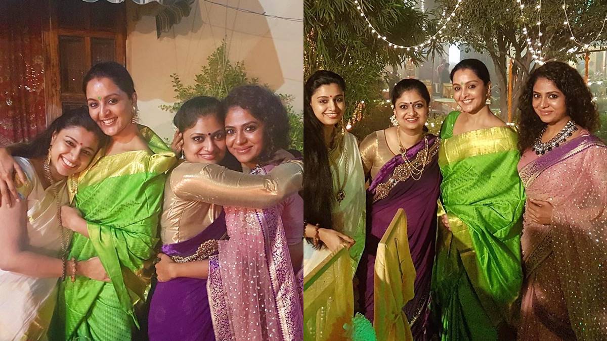 സാരിയണിഞ്ഞായിരുന്നു എല്ലാവരും എത്തിയത്. അതീവ സന്തോഷത്തോടെയായിരുന്നു എല്ലാവരും ചിത്രങ്ങള്ക്കായി പോസ് ചെയ്തത്. മഞ്ജു വാര്യരെ ചേര്ത്തുപിടിച്ച് നില്ക്കുകയാണ് സംയുക്ത, പൂര്ണിമയാവട്ടെ ഗീതുവിനെ കെട്ടിപ്പിടിച്ചായിരുന്നു പോസ് ചെയ്തത്. മഞ്ജുവിനേയും ഗീതുവിനേയും സംയുക്തയേയും ടാഗ് ചെയ്തായിരുന്നു പൂര്ണിമ ചിത്രം പോസ്റ്റ് ചെയ്തത്.