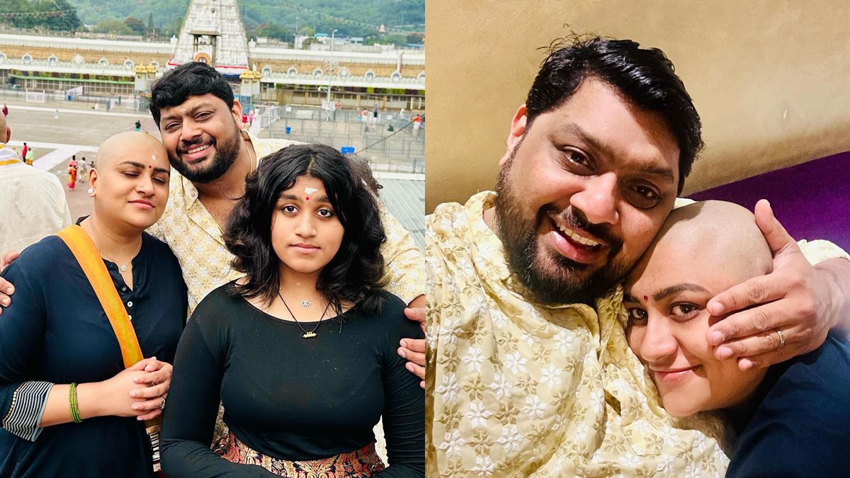 "മൊട്ടെയ് ബോസ് ലക്ഷ്മി. എന്റെ ബെല്സ് പള്സി പോരാട്ട ദിനങ്ങള് നിങ്ങളില് കുറെ പേര്ക്കെങ്കിലും അറിയാം എന്ന് തോന്നുന്നു. അന്ന് നിങ്ങള് ഓരോരുത്തരുടെയും പ്രാര്ഥന കൊണ്ട് തന്നെ ആണ് ഇന്ന് കാണുന്ന രൂപത്തില് തിരികെ എത്താന് കഴിഞ്ഞത്. പക്ഷെ എന്റെ ഭാര്യ ഒരു ലെവല് കൂടുതല് പ്രാര്ഥിച്ചിരുന്നു. ആ അസുഖം മാറാന് ഭാര്യ നേര്ന്നതാണ് തിരുപ്പതിയില് മുടി കൊടുക്കാം എന്ന്.അങ്ങനെ ചിഞ്ചുകുട്ടി മൊട്ട കുട്ടി ആയി.