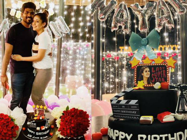സോഷ്യൽ മീഡിയയിൽ ഇപ്പോൾ വൈറലായി കൊണ്ടിരിക്കുന്നത് സംവിധായകൻ വിഘ്നേഷ് ശിവനുയുമായിട്ടുള്ള പിറന്നാൾ ആഘോഷ ചിത്രങ്ങളാണ്. 'എന്റെ തങ്കത്തിന് ചെറിയൊരു സര്പ്രൈസ്' എന്ന ക്യാപ്ഷനോടെ വിഘ്നേഷ് ശിവന് ചിത്രങ്ങള് സോഷ്യല് മീഡിയയില് പങ്കുവെച്ചിരുന്നു. ലേഡി സൂപ്പര് സ്റ്റാര് എഴുതിയ കേക്കില് ക്ലാപ്പ് ബോര്ഡും കൊണ്ട് മനോഹരമായി അലങ്കരിച്ചിട്ടുണ്ട്.കേക്കിന്റെ മുകളില് ഒമ്പത് എന്ന് എഴുതിയ ഒരു ചെറിയ കേക്കും ഒരുക്കിയിട്ടുണ്ടായിരുന്നു. പിറന്നാൾ ആഘോഷ ചിത്രങ്ങൾ സോഷ്യൽ മീഡിയയിൽ വൈറലാണ്.