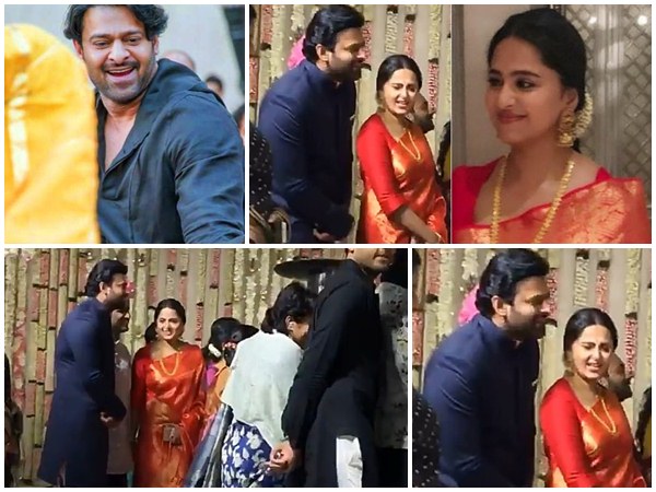 വധു-വരന്മാരെക്കാലും ക്യാമറ കണ്ണുകൾ പാഞ്ഞത് അനുഷ്കയേയും പ്രഭാസിന്റേയും പിന്നാലെയായിരുന്നു. ബാഹുബലി ചിത്രത്തിന്റെ പ്രേമോഷന് ശേഷം ഇരു താരങ്ങളും ക്യാമറയ്ക്ക് മുന്നിൽ ഒരുമിച്ചെത്തുന്നത് ഇപ്പോഴാണ്. ഈ അവസര നന്നായി ഉപയോഗപ്പെടുത്തിയിട്ടുണ്ട്. പട്ടു സാരിയിൽ അതീവ സുന്ദരിയായിട്ടായിരുന്നു അനുഷ്ക വിവാഹത്തിനെത്തിയത്. തലയിൽ മുല്ലപ്പൂ ചൂടി മറ്റൊരു ലുക്കിലായിരുന്നു താരം. പൊതുപരിപാടികളിൽ സാരി എത്താറുണ്ടെങ്കിലും ഇത് വേറിട്ട ഒരു ഗെറ്റപ്പായിരുന്നു. അതു പോലെ തന്നെയായിരുന്നു പ്രഭാസും. ഇവർ ഒരുമിച്ച് നിൽക്കുന്ന ചിത്രങ്ങളും ദൃശ്യങ്ങളും ഇപ്പോൾ സോഷ്യൽ മീഡിയയിൽ വൈറലാണ്.