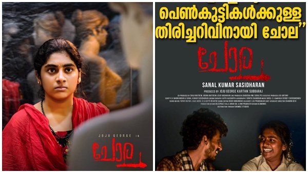 ജോജു ജോര്ജ്, നിമിഷ സജയന് എന്നിവരെ കേന്ദ്രകഥാപാത്രങ്ങളാക്കി സനല് കുമാര് ശശീധരന് സംവിധാനം ചെയ്ത ചിത്രമാണ് ചോല. പ്രശസ്തമായ പല ഫിലിം ഫെസ്റ്റിവലുകളിലും പ്രദര്ശിപ്പിച്ചതിന് ശേഷം ഡിസംബര് ആറിന് ചോല തിയറ്ററുകളിലേക്ക് എത്തി. എന്നാല് സിനിമയുടേതെന്ന പേരില് പ്രചരിച്ച പോസ്റ്ററിനെ കുറിച്ച് വിശദീകരണവുമായി എത്തിയിരിക്കുകയാണ് സംവിധായകന്.