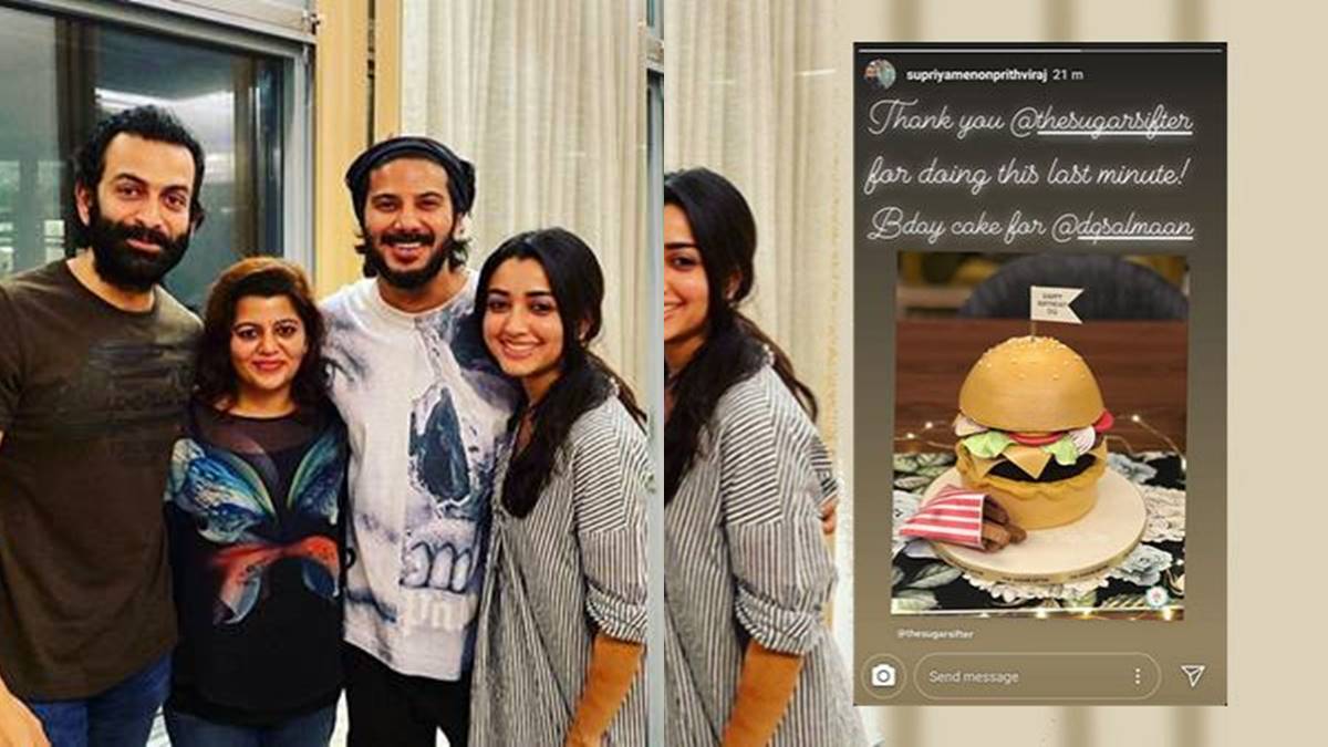 ദുല്ഖറിന് സര്പ്രൈസൊരുക്കിയത് സുപ്രിയ മേനോന്! ബര്ഗര് കേക്കുമായി വീട്ടിലേക്ക് നേരിട്ടെത്തി!