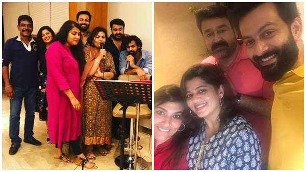 പൃഥ്വിയുടെയും മോഹന്ലാലിന്റെയും കുടുംബങ്ങള് ഒന്നിച്ച രാവ്! കുടുംബസമേതം പാട്ട് പാടി മോഹന്ലാല്