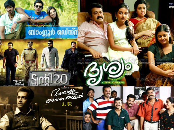മോഹന്ലാലിനെ നായകനാക്കി ജീത്തു ജോസഫ് സംവിധാനം ചെയ്ത ദൃശ്യമാണ് ഇപ്പോള് മുന് നിരയിലുള്ളത്. തിയേറ്ററുകളില് നിന്നും സാറ്റലൈറ്റ് തുകയും ആകെ മൊത്തം 60 കോടി രൂപ ചിത്രം നേടിക്കഴിഞ്ഞു. 20,000 ഷോകള് കേരളത്തിലെ തിയേറ്ററുകളില് കളിച്ചു. കേരളത്തിലെ പല തിയേറ്ററുകളിലും നൂറില് കൂടുതല് ദിവസം ഓടി. 4 കോടി രൂപയാണ് ചിത്രത്തിന്റെ നിര്മാണ ചെലവ്