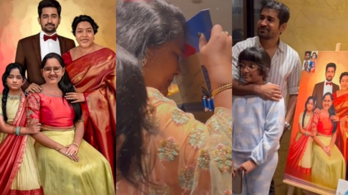 മകളുടെ വേർപാടിന് ശേഷം ആദ്യമായി അടുത്തിടെയാണ് വിജയ് ആന്റണിയുടെ ഭാര്യ ഫാത്തിമ രണ്ടാമത്തെ മകൾക്കും ഭർത്താവിനുമൊപ്പം പൊതുപരിപാടികളിൽ പങ്കെടുക്കാൻ എത്തിയത്. അത്തരത്തിൽ എത്തിയപ്പോൾ ഓയിൽ പെയിന്റിങ് ചെയ്യുന്നൊരു കലാകാരൻ വിജയ് ആന്റണിക്കും കുടുംബത്തിനും സമ്മാനിച്ചൊരു ഫോട്ടോയാണ് ഇപ്പോൾ വൈറലാകുന്നത്. മീരയ്ക്കൊപ്പമുള്ള ഒരു കുടുംബചിത്രവും.