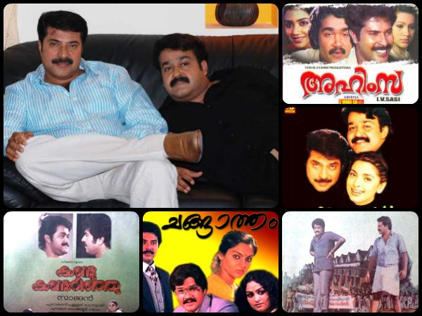 തുടര്ന്ന് പുറത്തിറങ്ങിയ സ്നേഹ കാഴ്ചയില് (1983), എന്റെ കഥ, ഗുരുദക്ഷിണ (1983), ഹിമവാഹിനി, അക്കരെ (1984), അങ്ങാടിക്കപ്പുറത്ത് (1985), നേരംപുലരുമ്പോള് (1986), കാവേരി (1986), പടയണി(1986) തുടങ്ങിയ ഒട്ടേറെ ചിത്രങ്ങളില് മമ്മൂട്ടിയും മോഹന്ലാലും ഒന്നിക്കുകയും വ്യത്യസ്ത കഥാപാത്രങ്ങളെ അവതരിപ്പിച്ചിട്ടുമുണ്ട്.