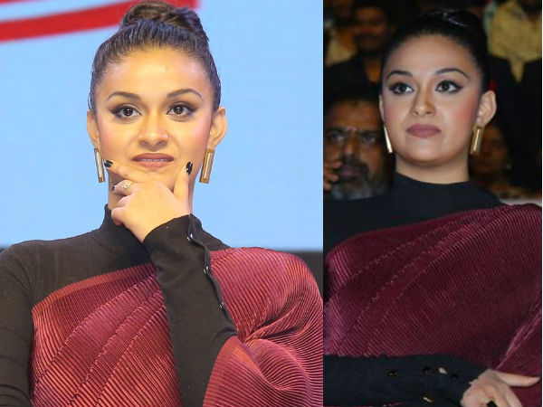 ഇതാണ് അഗ്നാതവസിയുടെ ഓഡിയോ ലോഞ്ചിന് വന്നപ്പോഴുള്ള കീര്ത്തിയുടെ രൂപം. സാരിയും കുപ്പായവുമൊന്നുമല്ല പ്രശ്നം.. കീര്ത്തിയുടെ ഹെയര്സ്റ്റൈലും മേക്കപ്പുമാണ് ആരാധകര്ക്ക് അത്ര സുഖിക്കാത്തത്.