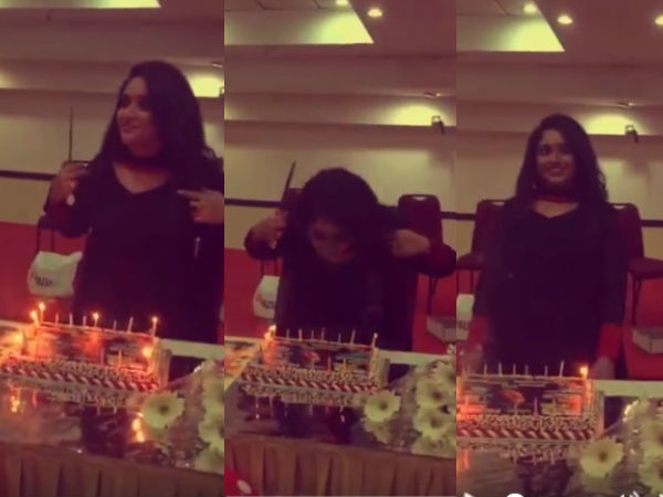 കഷ്ടപ്പെട്ട് മെഴുകുതിരി ഊതിയണച്ച് കേക്ക് മുറിക്കുന്ന കാവ്യ.. കാണൂ