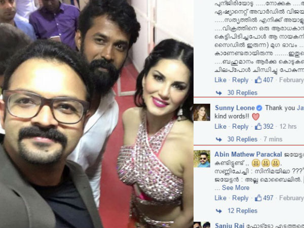 ജയസൂര്യയുടെ പോസ്റ്റിന് സാക്ഷാല് സണ്ണി ലിയോണ് മറുപടി കൊടുത്തു