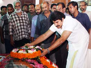 അന്ത്യാഞ്ജലിയര്പ്പിച്ച് പുറത്തിറങ്ങിയ മമ്മൂട്ടിയോട് കവിയും സമാന്തര ചലച്ചിത്ര പ്രവര്ത്തകനുമായ രാജു നാരായണത്ര മൃതദേഹത്തെ ഇങ്ങനെ അപമാനിക്കരുതെന്നു വിളിച്ചുപറയുകയായിരുന്നു. ഇത്തരം സന്ദര്ഭങ്ങളില് സമയനിഷ്ഠ പാലിയ്ക്കണമെന്നും രാജു വിളിച്ചുപറഞ്ഞു.