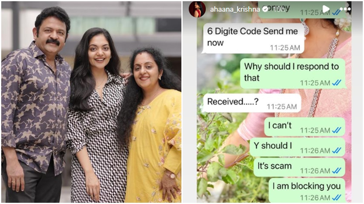 അമ്മയെ ചതിയില്പ്പെടുത്താന് നോക്കിയവരുടെ ചാറ്റ് സഹിതം പങ്കുവെച്ചാണ് വാട്സാപ്പ് ഉപയോഗിക്കുന്ന പ്രായമുള്ള ആളുകളടക്കം ശ്രദ്ധിക്കണമെന്ന മുന്നറിയിപ്പുമായി അഹാന എത്തിയത്.