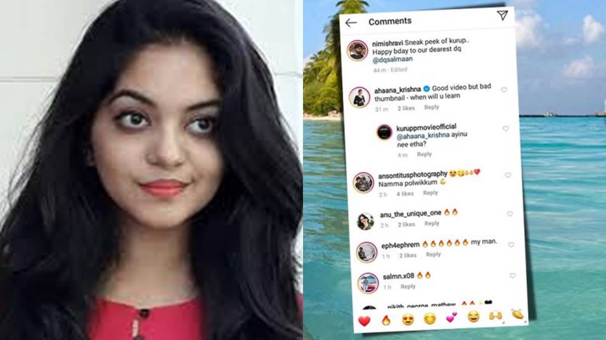 നല്ല വിഡിയോ പക്ഷേ മോശം തമ്പ്നെയിൽ - നിങ്ങളെന്നു പഠിക്കും ?' എന്നായിരുന്നു അഹാനയുടെ കമന്റ്. അതിന് താഴെ കുറുപ്പിന്റെ ഒഫിഷ്യൽ അക്കൗണ്ട് എന്ന അവകാശപ്പെടുന്ന പേജിൽ നിന്ന് 'അതിന് നീയേതാ ?' എന്ന് മറുപടി കമന്റ് വന്നിരുന്നു. ഇതോടെയായിരുന്നു താരം കമന്റ് ഡിലീറ്റ് ചെയ്തത്. അഹാന കമന്റ് ഡിലീറ്റ് ചെയ്തുവെങ്കിലും സ്ക്രീന് ഷോട്ട് സോഷ്യല് മീഡിയയിലൂടെ വ്യാപകമായി പ്രചരിച്ചിരുന്നു.