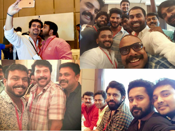 ദുല്ഖര് സല്മാന്, സണ്ണി വെയിന്, സുധീര് കരമന, എസ്പി ശ്രീജിത്ത്, ടൊവിനോ തോമസ്, രമേശ് പിഷാരടി, നാദിര്ഷ, ജയസൂര്യ, കുഞ്ചാക്കോ ബോബന്, വിനു മോഹന്, ഇന്ദ്രജിത്ത്, മുകേഷ് തുടങ്ങിയവര് ഒറ്റ സെല്ഫിയില്