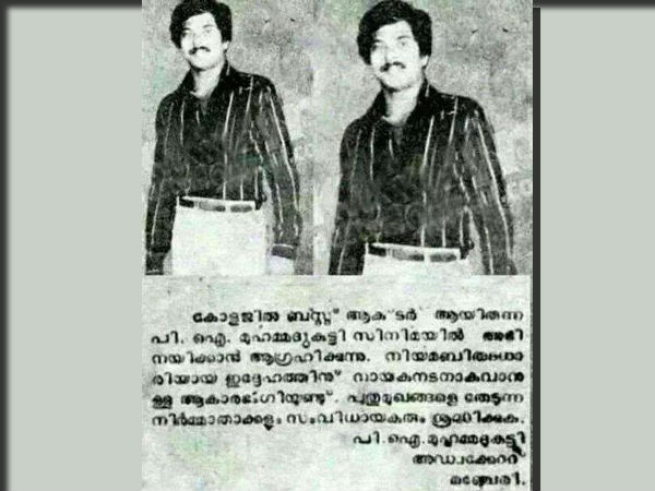 'കോളേജില് ബെസ്റ്റ് ആക്ടറായിരുന്ന പി ഐ മുഹമ്മദ്കുട്ടി സിനിമയില് അഭിനയിക്കാന് ആഗ്രഹിക്കുന്നു. നിയമബിരുദധാരിയായ ഇദ്ദേഹത്തിന് നായകനടനാകാനുള്ള ആകാരഭംഗിയുണ്ട്. പുതുമുഖങ്ങളെ തേടുന്ന നിര്മാതാക്കളും സംവിധായകരും ശ്രദ്ധിക്കുക. - പിഐ അബ്ദുള്ളകുട്ടി, അഡ്വക്കറ്റ്, മഞ്ചേരി' എന്നാണ് ഫോട്ടോയോടുകൂടി കൊടുത്ത പോസ്റ്ററിലെ അടിക്കുറുപ്പ്