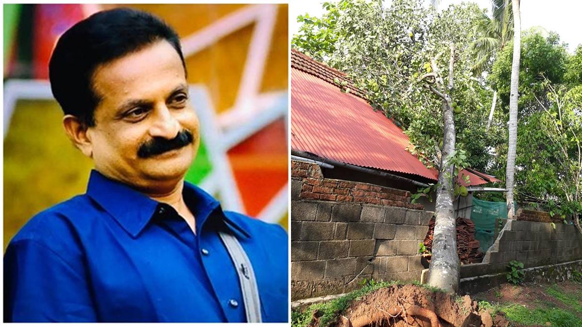 നേരെയാണ് ആ പ്ലാവ് വീണിരുന്നതെങ്കില് പഴയ ഓടിട്ട വീട് പൂര്ണമായി തകര്ന്നേനെ. ഏതോ അദൃശ്യ കരങ്ങള് കൊണ്ട് തട്ടിമാറ്റിയ പോലെ പ്ലാവ് അടുക്കളയുടെ ചായ്പ്പിലേക്ക് ചരിയുകയായിരുന്നു. കുറച്ച് മേല്ക്കൂരയും കഴുക്കോലും തകര്ന്നിരുന്നു. പഴയ ഭിത്തി വിണ്ടുകീറിയിരുന്നു. മരം വെട്ടിമാറ്റിയെന്നും അറ്റകുറ്റപ്പണികള് ഇന്ന് തന്നെ പൂര്ത്തിയാക്കുമെന്നും അദ്ദേഹം പറയുന്നു. കണ്ണില് കൊള്ളാനുള്ളത് പുരികത്തില് കൊണ്ടത് പോലെയാണ് തോന്നുന്നത്. ദൈവാനുഗ്രഹത്താല് മറ്റൊന്നും സംഭവിച്ചിട്ടില്ല. സുഖവിവരം അന്വേഷിച്ചവര്ക്കെല്ലാം നന്ദിയെന്നും അദ്ദേഹം പറയുന്നു.
