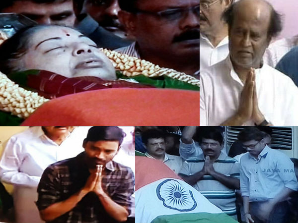 നടന് ധനുഷ് ജയലളിതയെ അവസാനമൊരുനോക്ക് കാണാന് വന്നപ്പോള്. ഭാര്യ ഐശ്വര്യയും കൂടെയുണ്ടായിരുന്നു