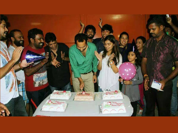 അഞ്ച് കേക്കുകളാണ് ഫഹദിന് മുറിക്കാനായി നിരത്തി വച്ചത്. അതില് ഒന്നാണ് ഫഹദ് മുറിച്ചത്. ആദ്യ കഷ്ണം നസ്രിയക്ക് തന്നെയായിരിക്കും കൊടുത്തിട്ടുണ്ടാവുക!!!