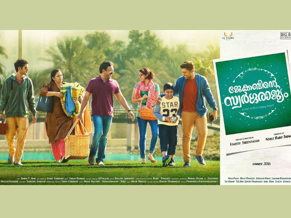 തലശ്ശേരി വിട്ട് നിവിനും വിനീതും ദുബായിലേക്ക് പ്ലെയിന് കയറി. ദുബായിയാണ് ജേക്കബിന്റെ സ്വര്ഗ്ഗരാജ്യത്തിന്റെ പ്രധാന ലൊക്കേഷന്. ഒരു കുടുംബ ചിത്രം എന്നതിനപ്പുറം സിനിമയെ കുറിച്ച് കൂടുതല് വിവരങ്ങളൊന്നും ലഭ്യമല്ല.