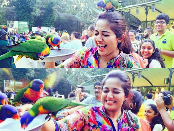 ഓസ്ട്രേലിയിലെ കരുമ്പിന് വന്യമൃഗ സംരക്ഷണ കേന്ദ്രത്തില് നിന്നുള്ളതാണ് കാവ്യയുടെ പുതിയ ചിത്രം. തത്തകള്ക്ക് ഭക്ഷണം കൊടുക്കുകയാണ് ചിത്രത്തില്. തലയില് തത്തയെ വച്ച് കൊടുത്തപ്പോഴുള്ള കാവ്യയുടെ എക്സ്പ്രഷനാണ് കലക്കിയത്!!